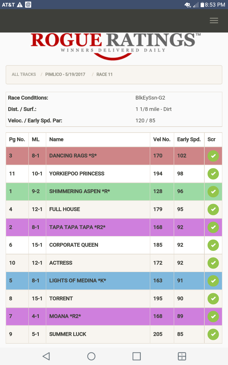 Here is the Rogue Handicapper® personal analysis of the unique Rogue Ratings™ computer program on The Black-Eyed Susan G-2 which you will only find on the Roguehandicapper.com at the Blog “From the Rail”: